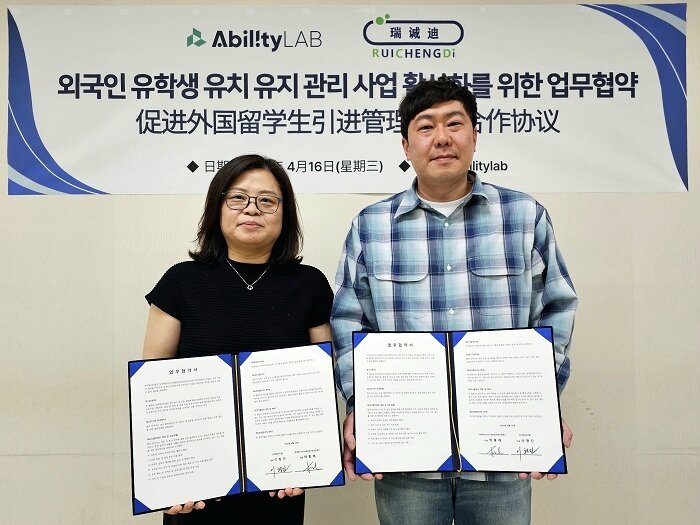 어빌리티랩 관계자는 "이번 협약은 단순한 유학생 유치에 그치지 않고, 학생 한 명 한 명의 삶과 미래까지 고려한 포괄적 지원을 위한 첫걸음이다"며 "뤼이성디와의 긴밀한 협력을 통해 아시아 지역 유학생 유치에 있어 새로운 패러다임을 제시할 것"이라고 전했다.